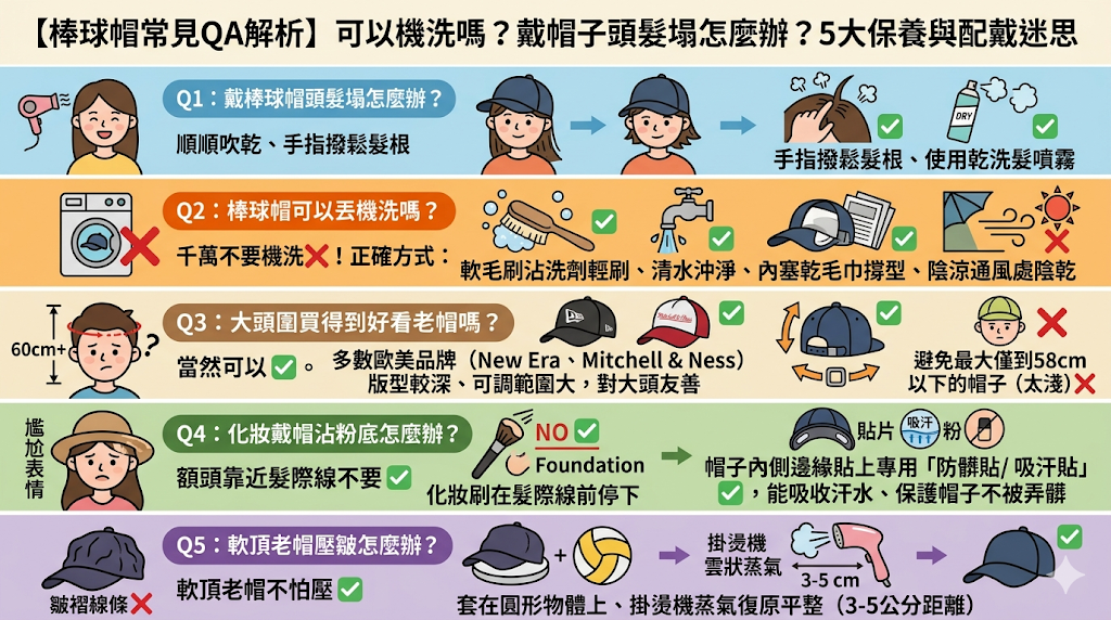 棒球帽常見QA解析:可以機洗嗎?戴帽子頭髮塌怎麼辦?5大保養與配戴迷思