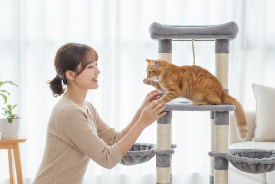 跳板高度:合理的跳板間距,能讓貓咪輕鬆跳躍減少關節負擔。對於幼貓或老貓,選擇階梯式或間距較小的跳台會更合適。