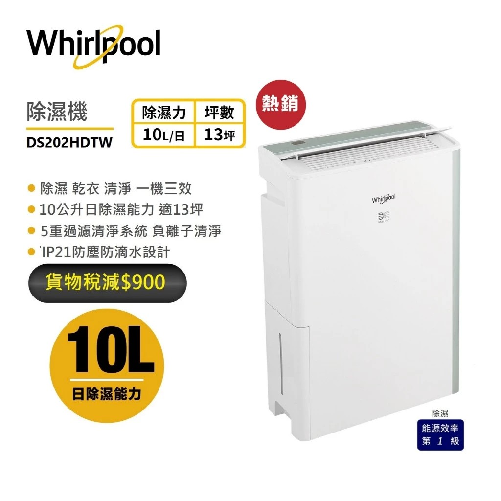 5.【Whirlpool 惠而浦】第六感智能清淨除濕機 (10L)