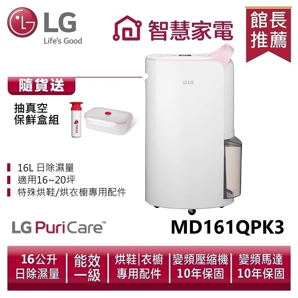 3.【LG 樂金】PuriCare WiFi 變頻除濕機 (16L/粉紅)