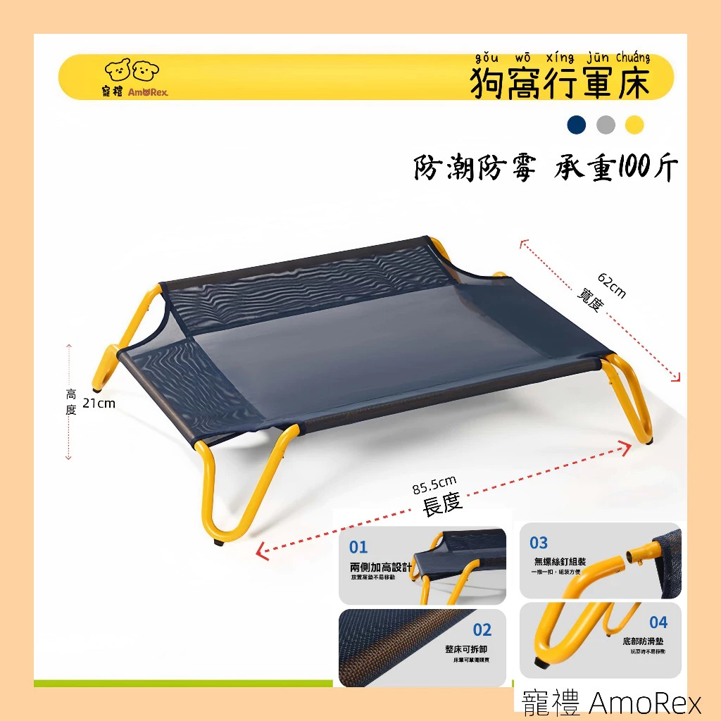 為什麼需要行軍床?:1.「透氣、散熱」:是行軍床,最重要的「靈魂」!架高的設計,能讓空氣,360度地,在床底流通,讓毛孩,即使在夏天,也能睡得涼爽、不悶熱。2.「防潮、防髒」:能將毛孩,與潮濕、髒污的地面,隔絕開來,是所有皮膚敏感毛孩的救星。3.「保護關節」:有彈性的網布,能均勻地,分散、支撐毛孩的體重,對於關節不好的「高齡犬」,或「大型犬」來說,是最佳的選擇。