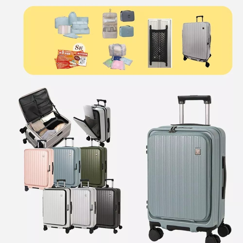 如果你是一位「收納控」或是常在「狹小空間」整理行李的旅人,那LureDada這款大嘴獸2代絕對是妳的夢幻逸品。它最大的特色就在於那超方便的「前開式設計」!不用把整個行李箱攤平,站著就能輕鬆拿取深處的物品,在飯店走道或機場整理行李時超級優雅。煞車避震輪讓妳在斜坡或捷運上也能穩穩停住。100% PC材質更是堅固耐用。對於所有喜愛井井有條、追求便利性的妳來說,這是一款最貼心的選擇。
